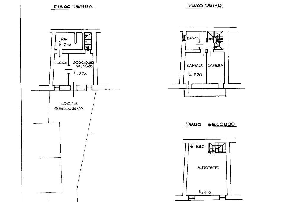 L’immobile, al piano d’ingresso, è composto da soggiorno, cucinotto separato e cantina. Tramite una comoda scala interna si accede al primo piano, dove troviamo due camere da letto e un servizio finestrato. Al secondo ed ultimo livello è presente una soffitta di generose dimensioni.